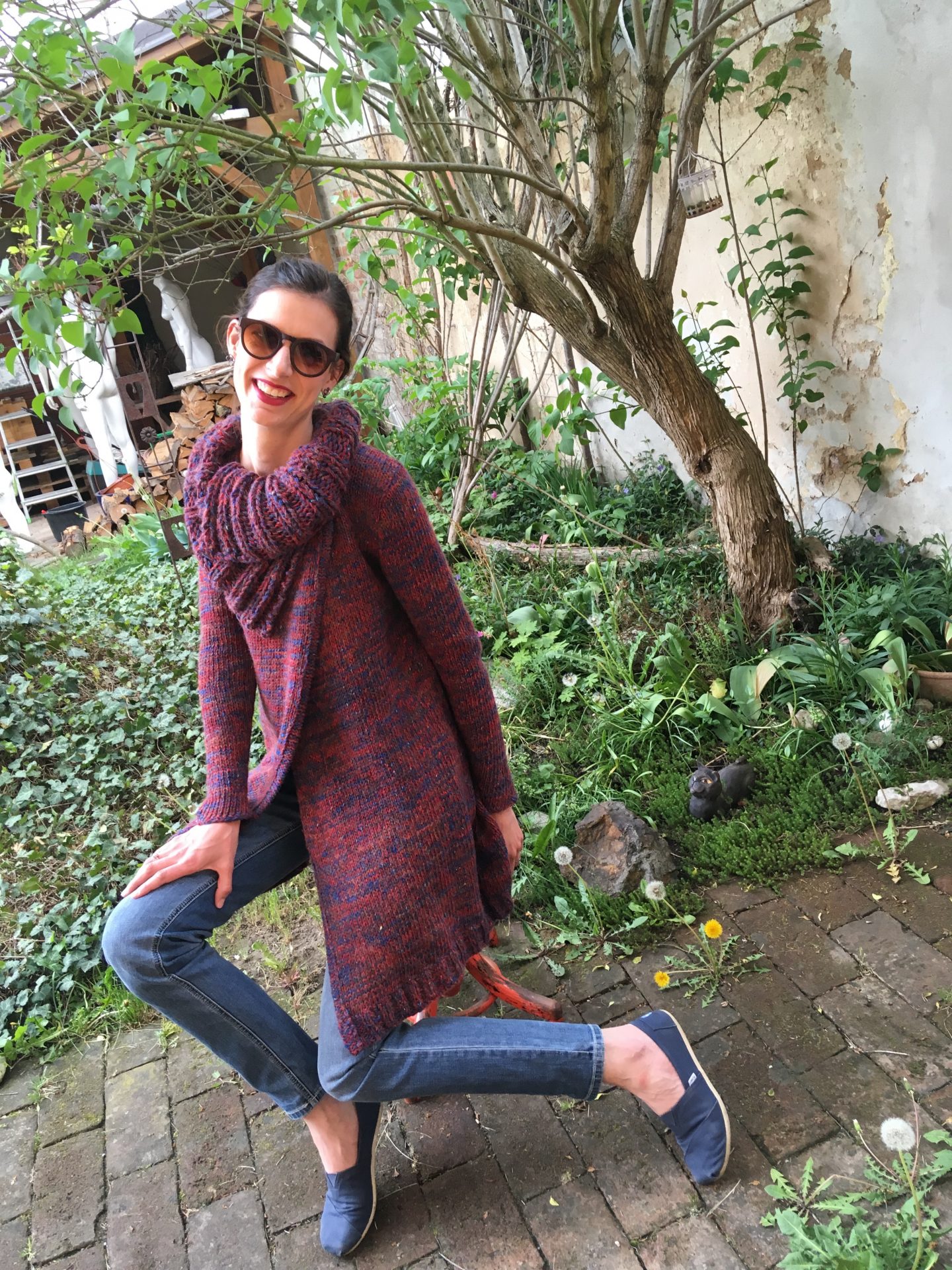 Velmi pohodlný přepínací kabátek pro všední den i na svátek. Základ příze jsem nakombinovala ze 100% vlákna merino vlny a mohéru. Vysoký variabilní límec. Kabátek je vzdušný a hřejivý zároveň. Do každého šatníku!